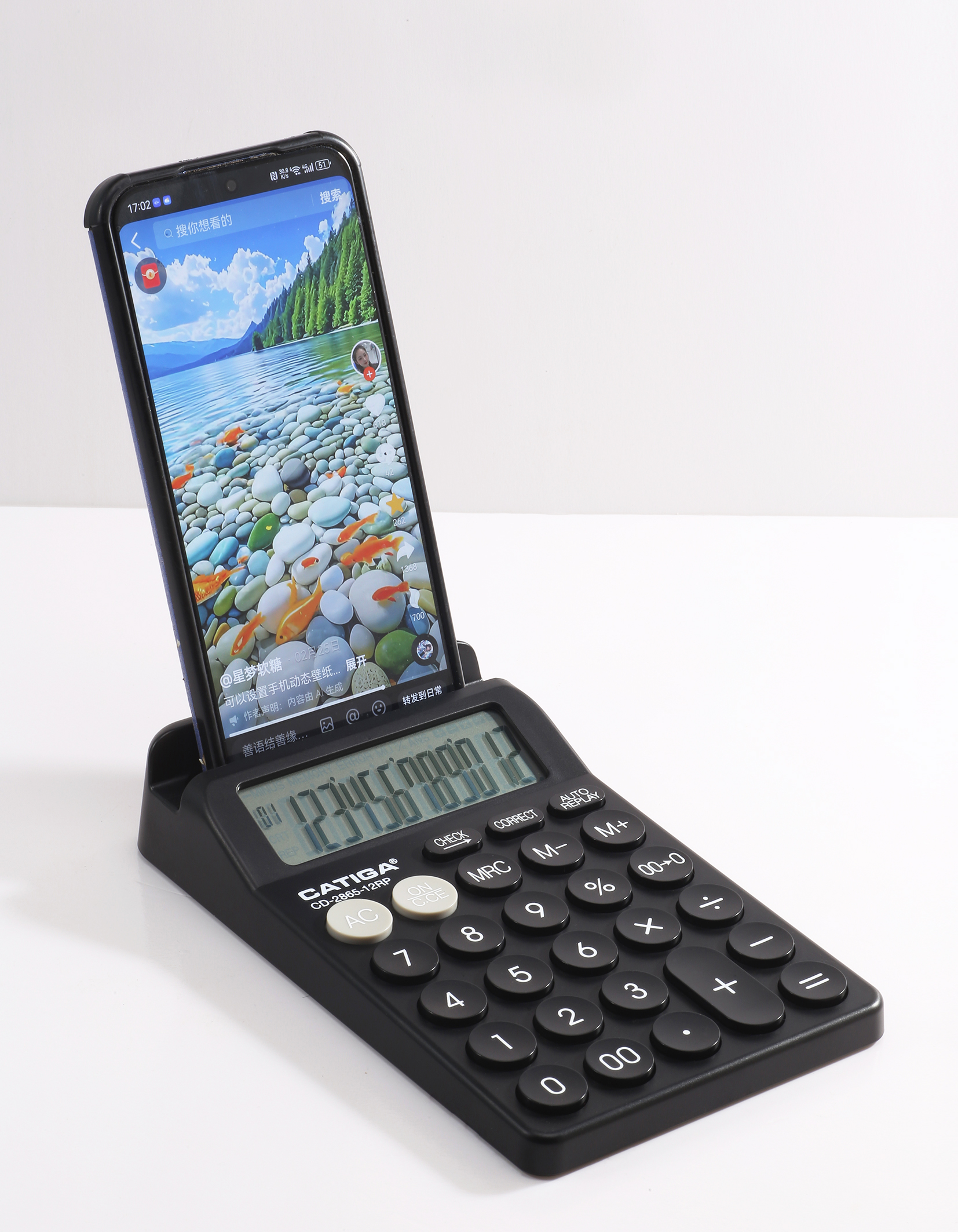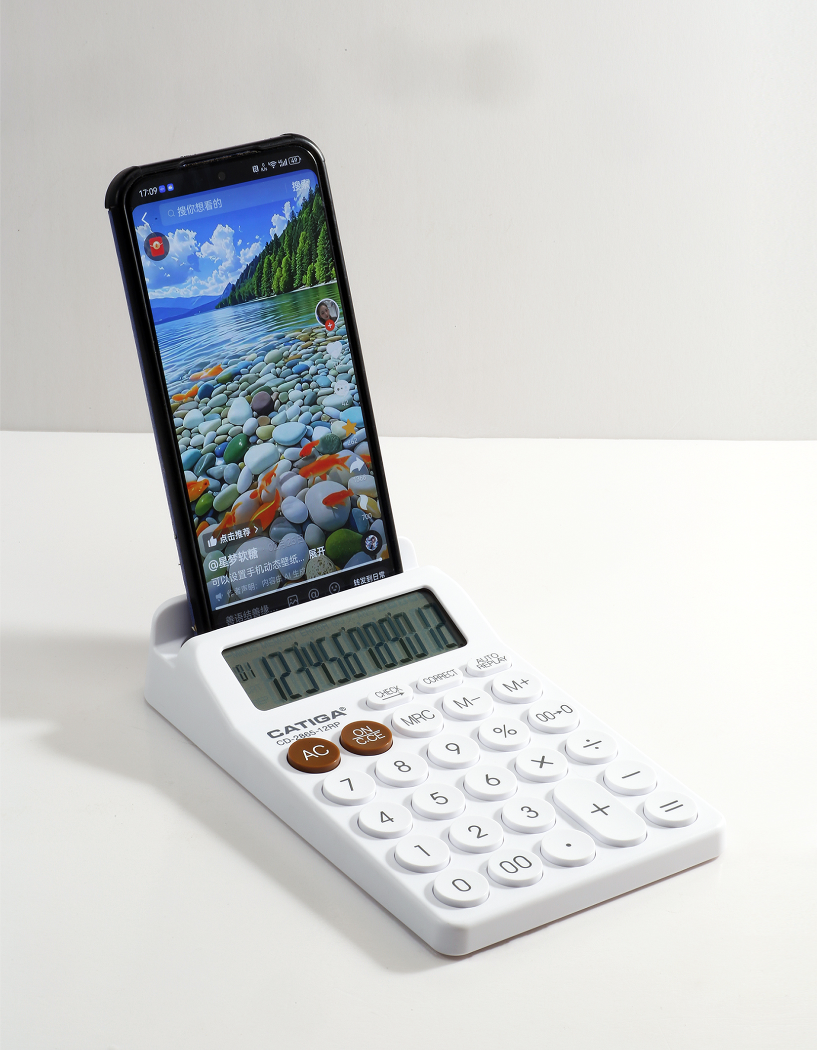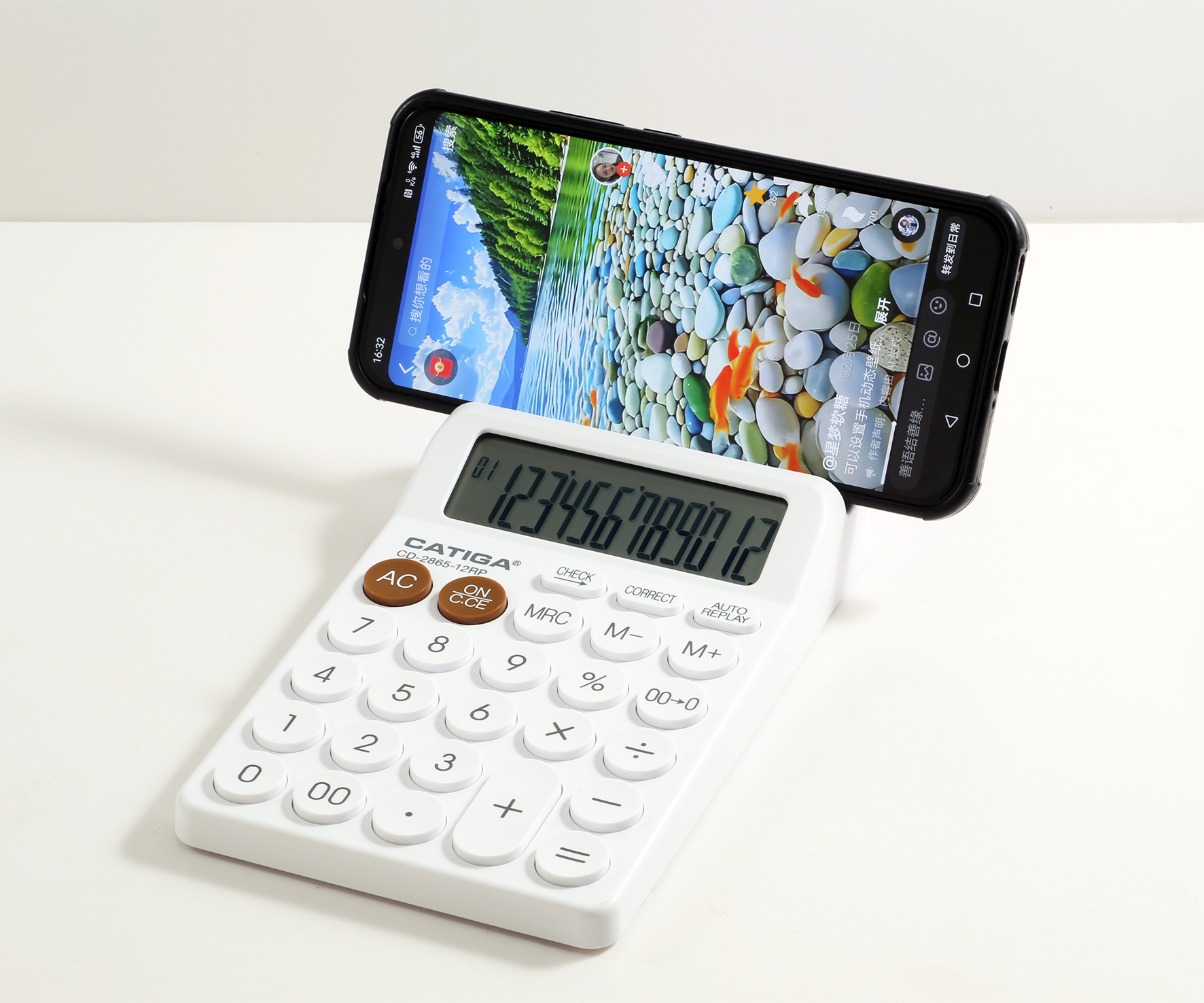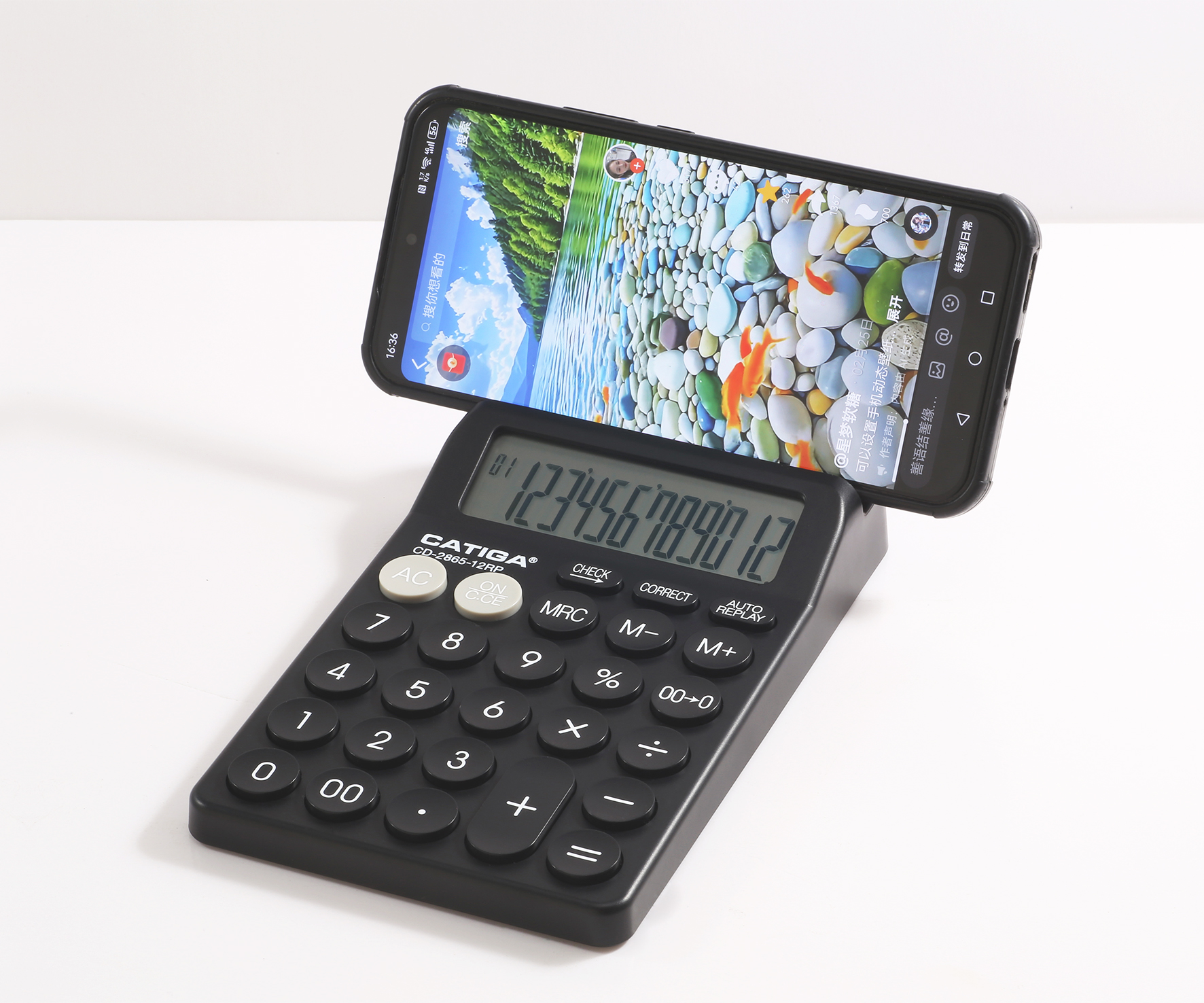 calculator with cell phone holder